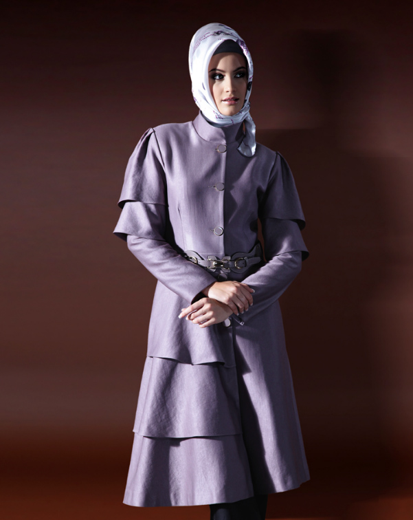 katlı mor çok şık keten pardesü
