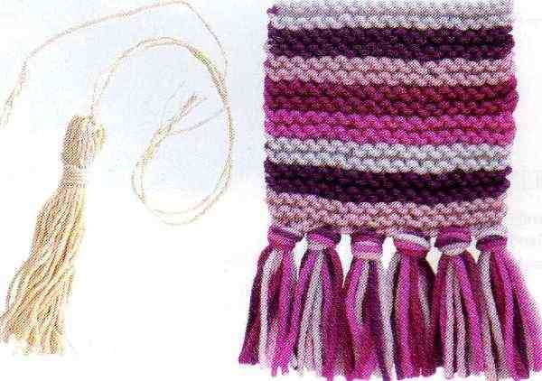 Çok renkli bir giyside, tek renkli bir saçak yerine, her bir demette eşit oranda her renkten iplik kullanmayı deneyin.