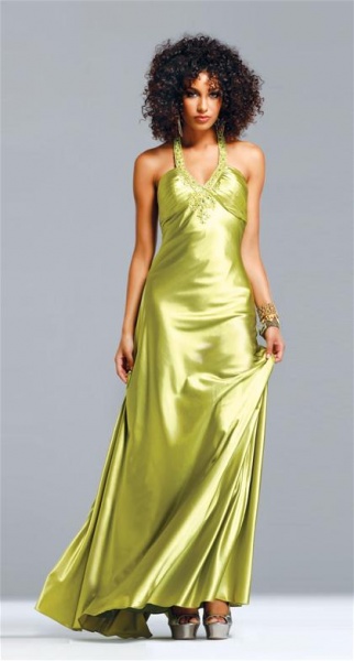 Sarı Parlak Kumaştan Yapılmış Bir Uzun Elbise Modeli